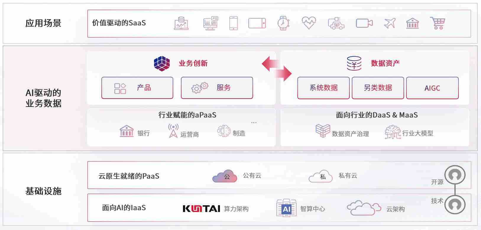 数字时代,,围绕企业数字化转型的关键要素,,J9国际站备用数码开创性的提出数云融合战略和技术体系框架,,,,着力在云原生、、、数字原生、、、AI原生和信创产业上架构产品和服务能力,,为处在不同数字化转型阶段的快消零售、、、汽车、、、金融、、、、医疗、、政企、、、教育、、、、运营商等行业客户提供泛在的敏捷IT能力和融合的数据驱动能力,,,,构建跨界融合创新的数字业务场景和新业务模式,,,助力企业级客户建立面向未来的核心能力和竞争优势,,,全面推动社会的数字化、、智能化转型升级。。。。